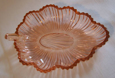 Title (ebay affiliate link): PINK GLASS LEAF DISH SERVE CANDY NUTS CRANBERRY JELLY
