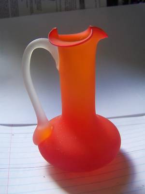 Title (ebay affiliate link): Orange Satin Hand Blown Depression Glass Pitcher Vase