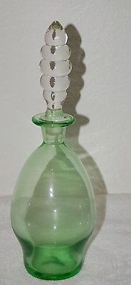 Title (ebay affiliate link): decanter, art deco, vintage green depression glass with clear glass stopper 12"
