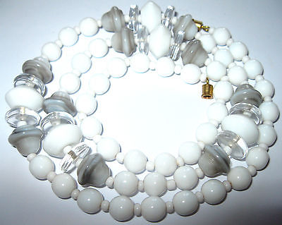 Pretty VINTAGE 1950's MARBLED OPAL VENETIAN WHITE MILK GLASS BEAD LONG NECKLACE
