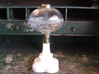 Antique Hobbs Loop and Rib Band Oil Lamp Milk Glass Base 1870