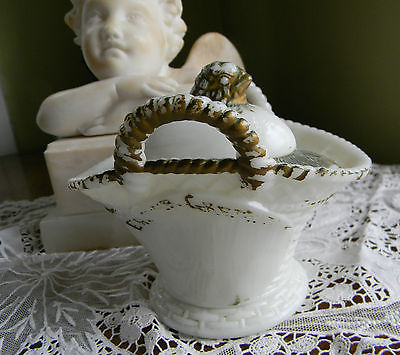 Antique Milk Glass Covered Dish Easter Greetings Basket with Chick