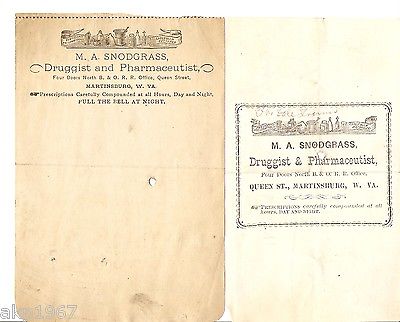 Title (ebay affiliate link): 14 Prescriptions 1877 M.A. Snodgrass Druggist & Pharmaceutist Martinsburg WV