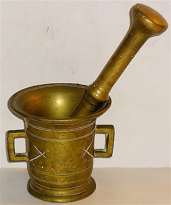 EARLY Vintage BRASS MORTAR & PESTLE SET! NR!