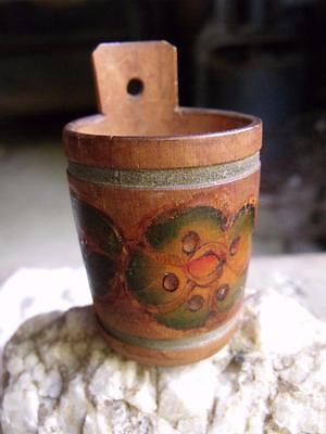 Small Primitive Antique Turned Wood Bucket Hand Painted Match Toothpick Holder