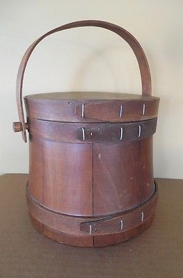 Title (ebay affiliate link): VINTAGE 6 1/2" WOOD FIRKIN PANTRY SUGAR BOX~GREAT ORIGINAL FINISH