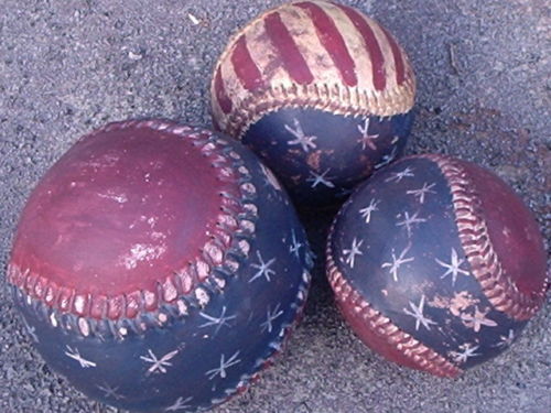 Title (ebay affiliate link): 3 OLD USED BASEBALLS PAINTED & DISTRESSED PATRIOTIC RED WHITE & BLUE