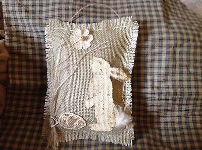 PRIMITIVE SPRING EASTER BUNNY RABBIT BOWL FILLER SHELF TUCK FABRIC BURLAP 3