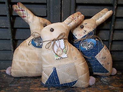 Trio of Primitive Antique Cutter Quilt Bunnies - Easter and/or Spring Decoration