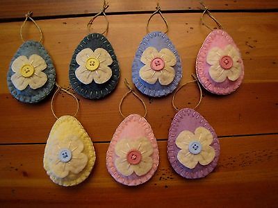 PRIMITIVE WOOL FELT BOWL FILLERS ORNAMENTS ORNIES EASTER EGGS WITH FLOWERS