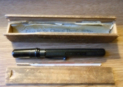 Title (ebay affiliate link): VINTAGE 1920`s MEDICAL THERMOMETER WITH ORG. CASE & WOOD BOX