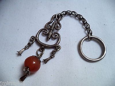 STUNNING VINTAGE TESTED 925 STERLING SILVER CARNELIAN BEAD KEY CHAIN!!! 146Y