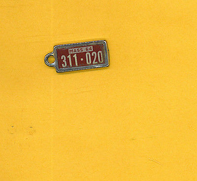 VINTAGE MINIATURE KEY CHAIN LICENSE PLATE * MASSACHUSETTS 1964 * CHEVY FORD OLDS