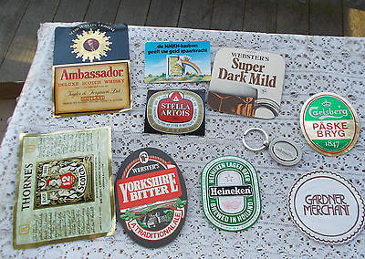 LOT Vintage Beer Bar Labels Key Chain Coasters Dewar's Heineken Scotch Loburg NR
