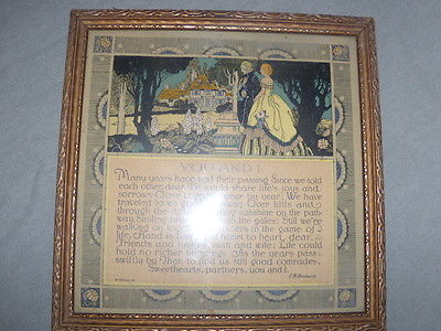 VINTAGE ANTIQUE, FRAMED MOTTO PRINT,YOU AND I, GIBSON,1926.