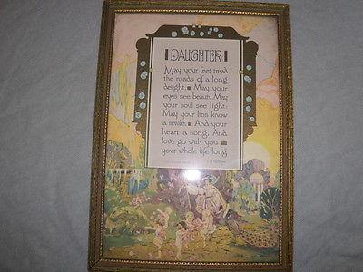 VINTAGE ANTIQUE, FRAMED MOTTO PRINT, DAUGHTER, BUZZA,1924