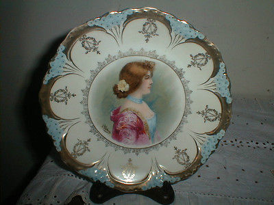 Stunning Antique Three Crown Germany Artist Signed Portrait Plate
