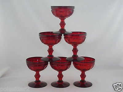 6 Fenton Glass 1933 PLYMOUTH #1620 Ruby Red Champagne Sherbet Goblets Set of 6