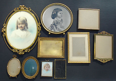 VTG LOT 10 FANCY BRASS METAL FRAMES CHILD PRINTS VICTORIAN DECO ANTIQUE