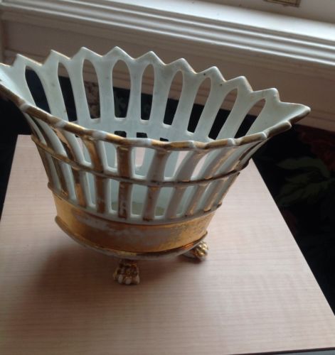 ANTIQUE VINTAGE FRENCH OLD PARIS PORCELAIN RETICULATED BASKET GOLD TRIM NOT REPR
