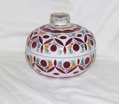 Title (ebay affiliate link): 19th Century Bohemian Cranberry Cased Milk Glass Bon Bon Dish and Cover