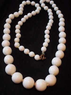 VINTAGE - Pretty Long Graduated White Milk Glass Beaded NECKLACE