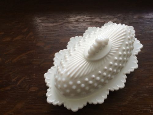 Fenton Hobnail Milk Glass Oval Covered Butter Dish