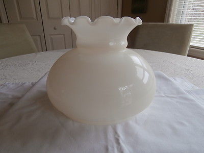 VTG. COLEMAN RUFFLED TOP MILK GLASS LAMP SHADE ~~COLEMAN, STUDENT OIL ALADDIN