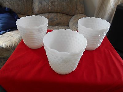 Lot of 3 White Milk Glass Fire King Hobnail Design Large 5" Planters