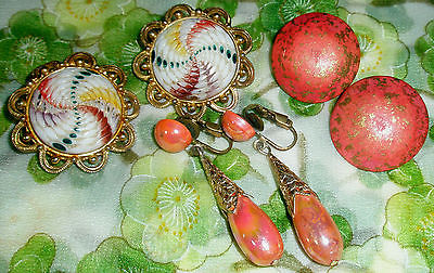 VINTAGE COSTUME CLIP EARRINGS LOT MILK GLASS WOOD CERAMIC