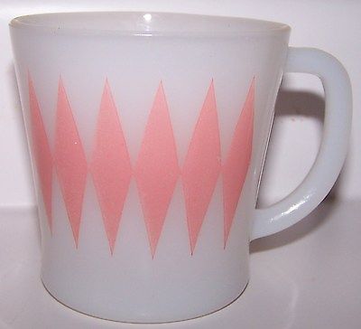 GLASBAKE PINK DIAMOND DESIGN MILK GLASS CUP / MUG