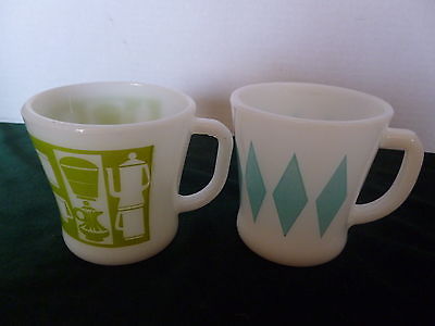Title (ebay affiliate link): SET OF 2 VINTAGE MILK GLASS MUGS FIRE KING & FEDERAL GLASS BLUE & GREEN
