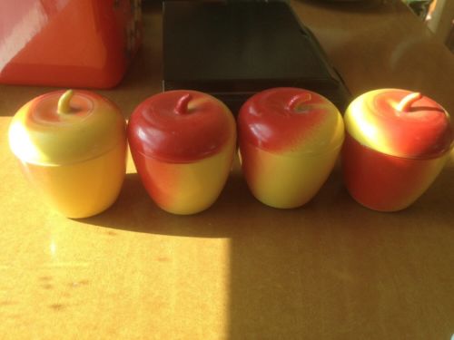 Title (ebay affiliate link): Lot 4 PAINTED APPLE BUTTER JAR Vintage Milk Glass Bowl + Lid 1950s HAZEL ATLAS