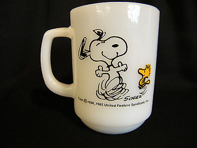 ANCHOR HOCKING FIRE KING MILK GLASS PEANUTS SNOOPY WOODSTOCK "PURE JOY" MUG