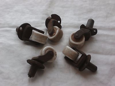 Set of 5 Matching Matched Antique Cast Iron & Porcelain Casters