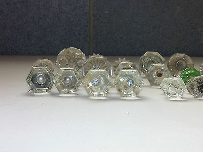 ANTIQUE VINTAGE LOT OF 19 GLASS KNOBS FURNITURE HARDWARE GREEN LARGE FACETED