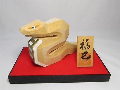 Japanese vintage wooden carved ornament statue zodiac figure snake Okimono