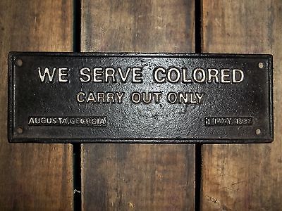 Title (ebay affiliate link): Cast Iron Segregation Sign "We Serve Colored Carry Out Only" 1932 Augusta, Ga.