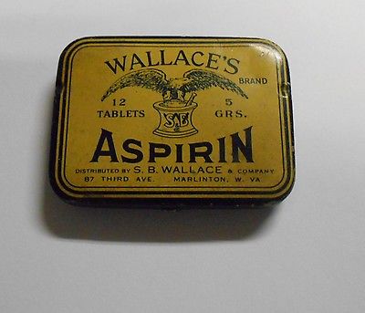 Vintage Wallaces Brand Aspirin Tin Marlington W VA