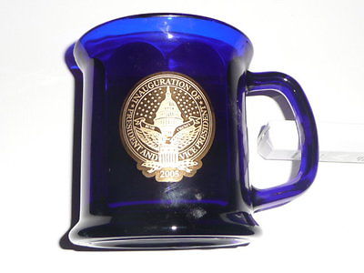 George W Bush 43 Cobalt Blue Glass Coffee Cup Mug 2005 Inaugural RARE