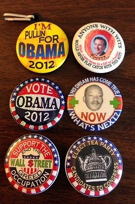 Title (ebay affiliate link): Lot of 5 Guardfrog Political Pinback Buttons and 1 Obama Clip
