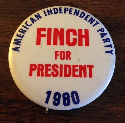 Title (ebay affiliate link): 1980 American Independent Party Finch for President Pinback Button