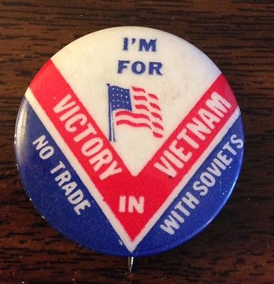 Title (ebay affiliate link): I'm For Victory in Vietnam/No Trade With Soviets Cause Pinback Button