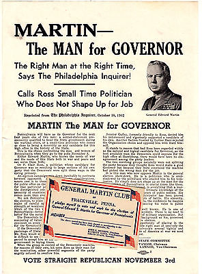 Title (ebay affiliate link): Pennsylvania Governor Edward Martin Flyer 1943 & General Martin Club Card