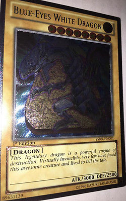Title (ebay affiliate link): Blue Eyes White Dragon YSKR-en001 Ultimate Rare First Edition Mint Condition