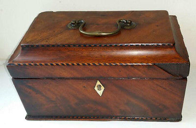 Wonderful 1780 Flame Mahogany Tea Caddy with Barber Pole Banding NO RESERVE