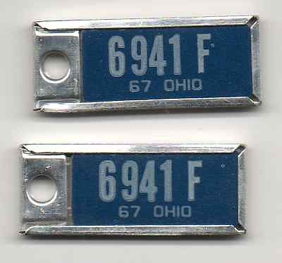 Vintage OHIO License Plate Key Chain Tags 1967 Matching Pair