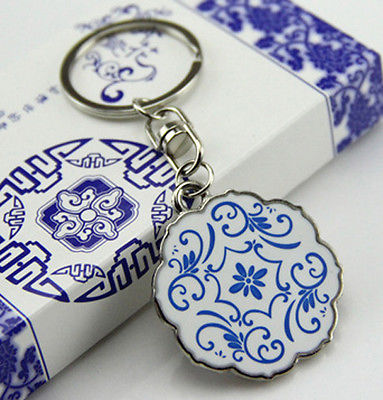 Title (ebay affiliate link): Vintage chinese style blue and white porcelain Metal keychain keyring