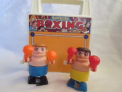 Vtg. BUMBLING BOXING Wind-Up Boxer Toys TOMY Robot w/Case