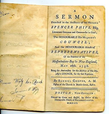 Title (ebay affiliate link): RARE 1756 American Imprint Sermon Before SPENCER PHIPS (Boston) Green & Russell